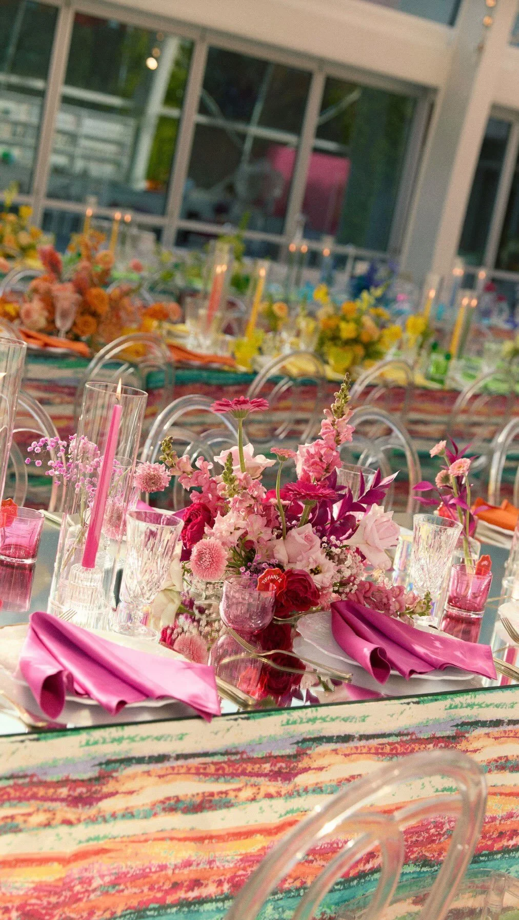 Forty in Full Color Rainbow-themed Birthday Party underneath the art of the iconic Chihuly Glass Museum