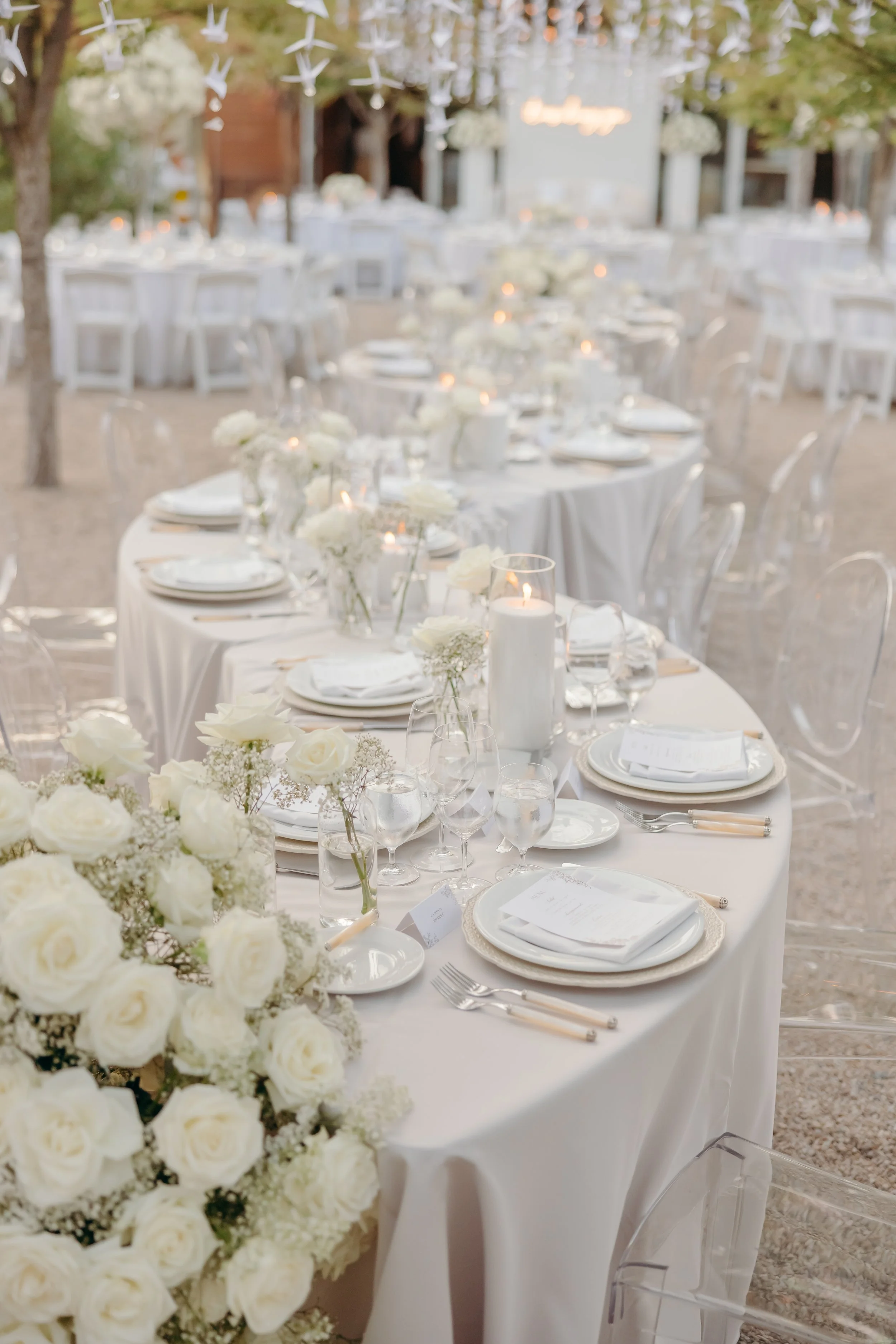 Under a canopy of 1,000 hand-folded paper cranes, Stephanie and Owen’s wedding unfolded as a poetic blend of modern elegance and cultural symbolism. The design, led by Gian Events, balanced timeless beauty with personal detail—soft florals, clean lines, custom signage, and subtle nods to Japanese tradition came together in a setting that felt both luxurious and deeply intimate. Every detail spoke of intention, transforming the winery into a space filled with light, emotion, and quiet meaning.
